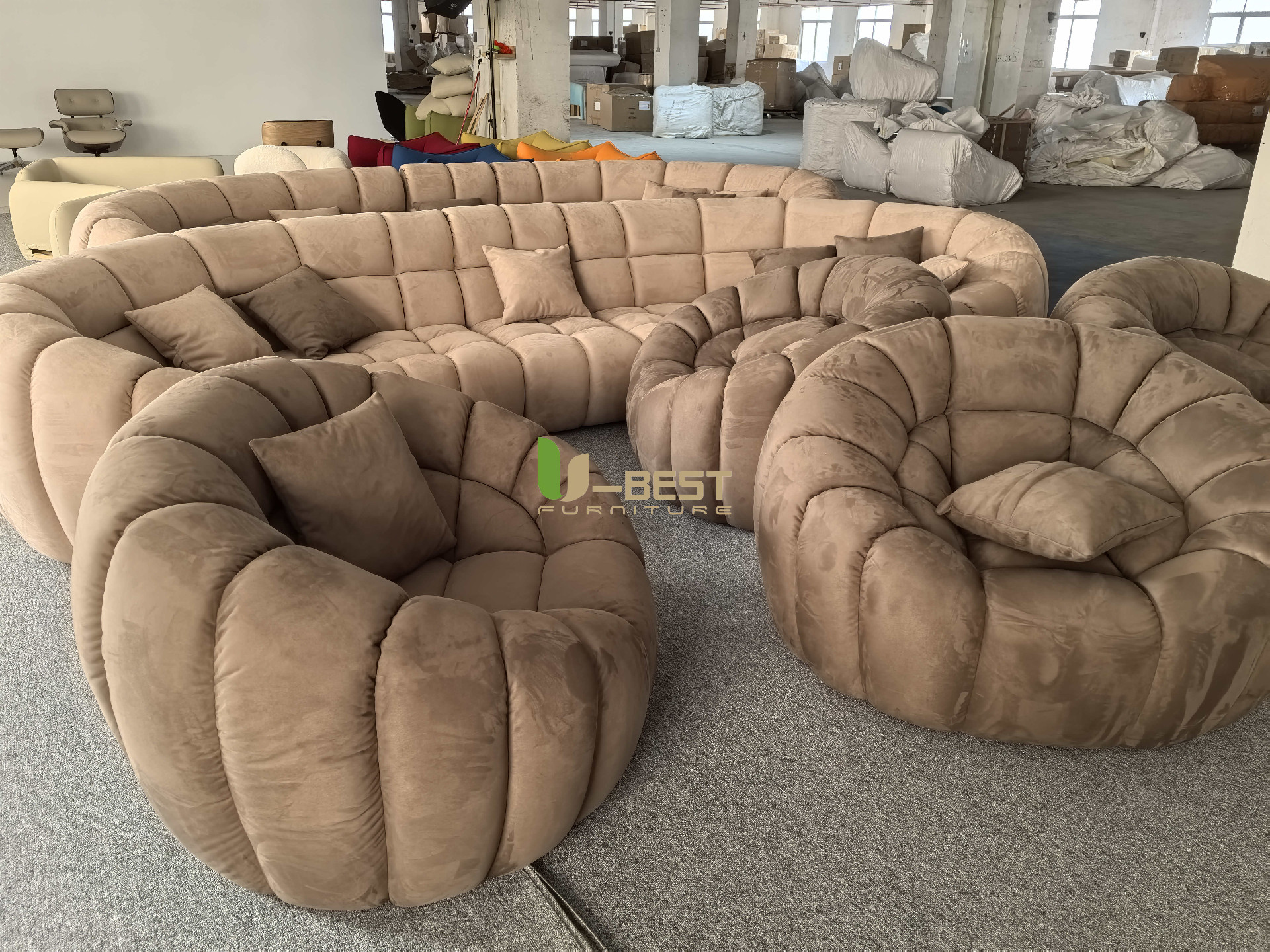 Foshan U-best Furniture Co.,Ltd. is located in Longjiang Town, Shunde District, Foshan City, the largest furniture production base in China. We mainly produce sofas, lounge chairs, dining tables, dining chairs, coffee tables, etc. The style types include household furniture, commercial furniture, pilots' furniture as well as outdoor furniture, and we have been exporting for 10 consecutive years to the United States, Canada, the United Kingdom, Germany, France, Russia, Saudi Arabia, Dubai, Italy, Holland, Sweden, Austria and other countries,We focus on serving project buyers, local e-commerce companies in various countries, furniture designers and other distribution and wholesale customers in the global furniture field. We are committed to 100% quality control, careful material selection, meticulous production process, rapid product updates, where you can rest assured that you will be able to purchase a wide range of upholstered furniture at the right price and high quali.